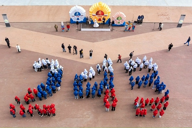 — 243 значкиста выстроили живую композицию из цифр.