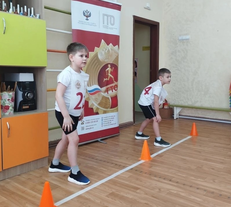 Бег на 10 м, наклон вперёд из положения стоя на гимнастической скамье, прыжок в длину с места, челночный бег 3х10 метров, поднимание туловища из положения лежа за 30 секунд покорились маленьким физкультурникам пусть и не просто, но малыши с испытаниями справились, показав хорошую быстроту, скоростно-силовые возможности, гибкость и координацию.